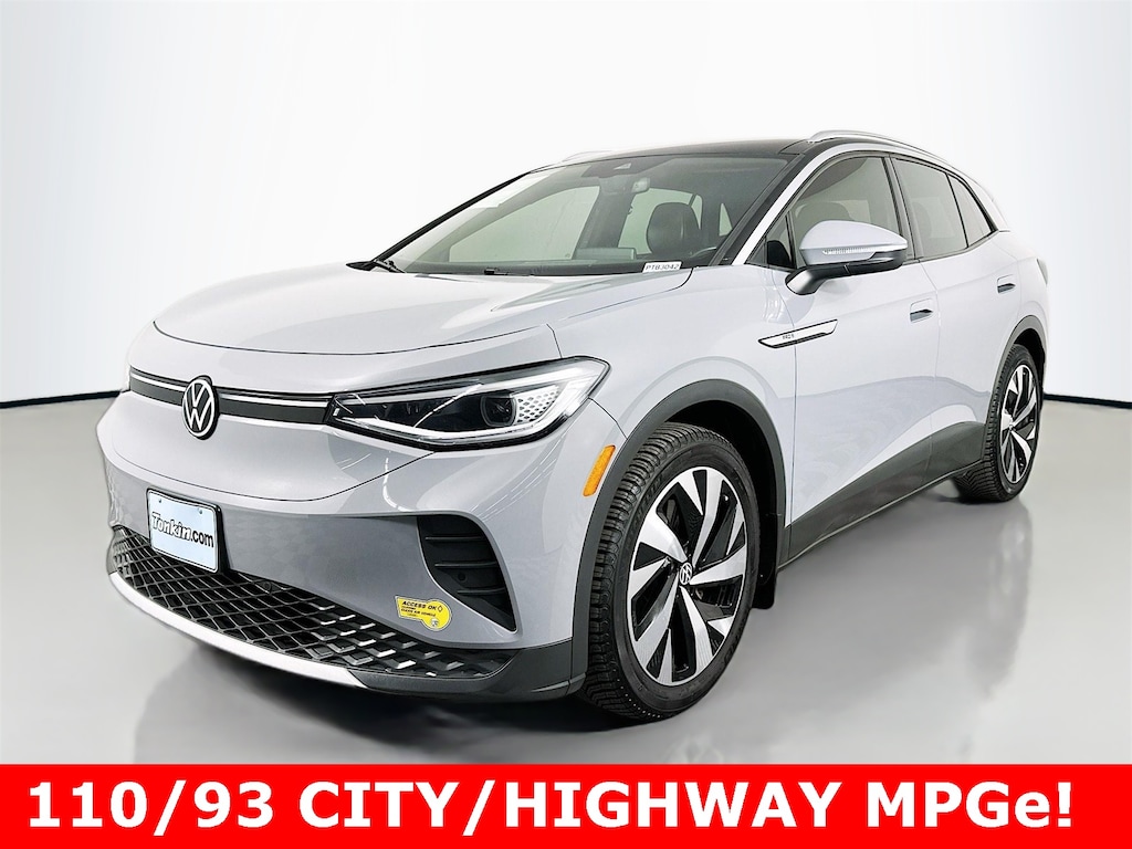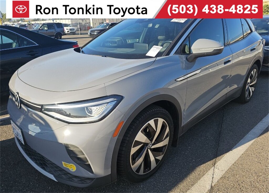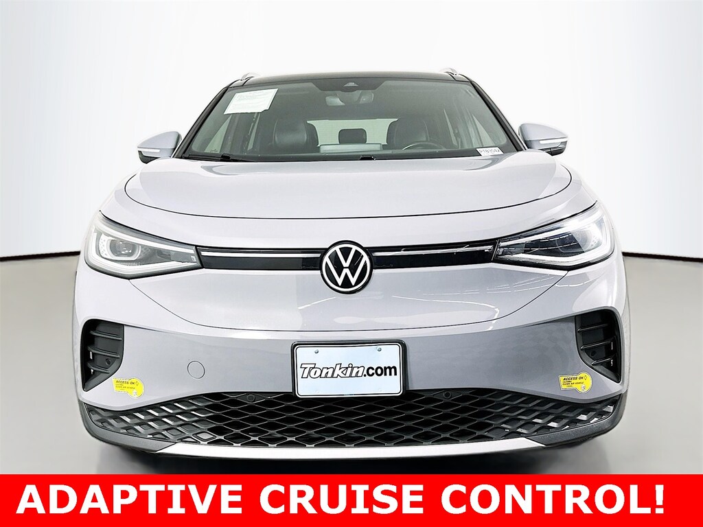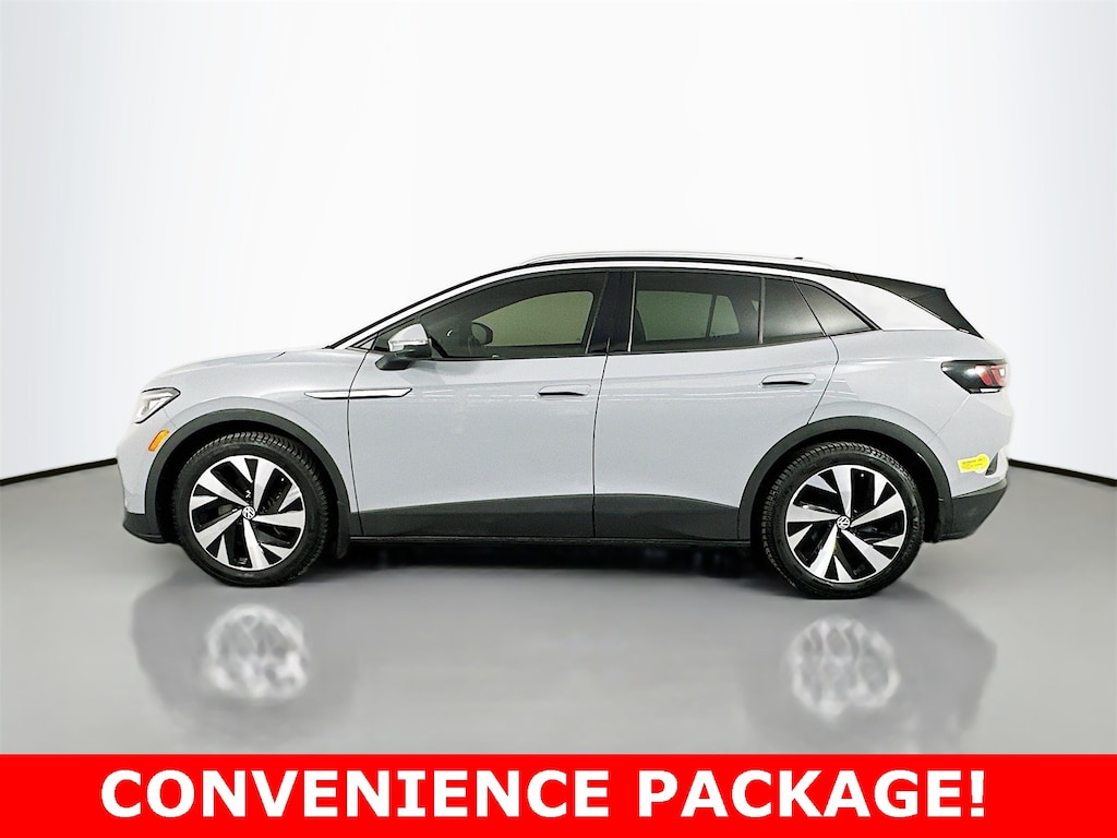 4 Wheel Independent Suspension, 4.39 Axle Ratio, 7 Speakers, ABS brakes, Air Conditioning, Auto High-beam Headlights, Auto-dimming Rear-View mirror, Auto-Dimming Rearview Mirror w/Homelink, Automatic temperature control, Brake assist, Bumpers: body-color, Delay-off headlights, Driver door bin, Driver vanity mirror, Driver's Seat Mounted Armrest, Dual front impact airbags, Dual front side impact airbags, Electronic Stability Control, Emergency communication system: VW Car-Net services (capabilities require enrollment or subscription), EV Roadside Assistance Kit, Exterior Parking Camera Rear, First Aid Kit, Four wheel independent suspension, Front anti-roll bar, Front Bucket Seats, Front dual zone A/C, Front fog lights, Front reading lights, Fully automatic headlights, Heated door mirrors, Heated Front Seats, Heated steering wheel, Heavy Duty Trunk Liner w/VW CarGo Blocks, ID.4 Protection & Convenience Package, Illuminated entry, Low tire pressure warning, Memory seat, Navigation System, Occupant sensing airbag, Outside temperature display, Overhead airbag, Overhead console, Panic alarm, Passenger door bin, Passenger seat mounted armrest, Passenger vanity mirror, Perforated V-Tex Leatherette Seating Surfaces, Power door mirrors, Power driver seat, Power Liftgate, Power passenger seat, Power steering, Power windows, Radio data system, Radio: Discover Pro Max w/12" Touchscreen Nav, Rain sensing wipers, Rear anti-roll bar, Rear reading lights, Rear seat center armrest, Rear window defroster, Rear window wiper, Remote keyless entry, Roof rack: rails only, Rubber Mats Kit (Set of 4), Speed control, Speed-sensing steering, Split folding rear seat, Spoiler, Steering wheel mounted audio controls, Telescoping steering wheel, Tilt steering wheel, Traction control, Trip computer, Turn signal indicator mirrors, Variably intermittent wipers, Wheels: 19" 5-Spoke 2-Tone Machined Alloy.