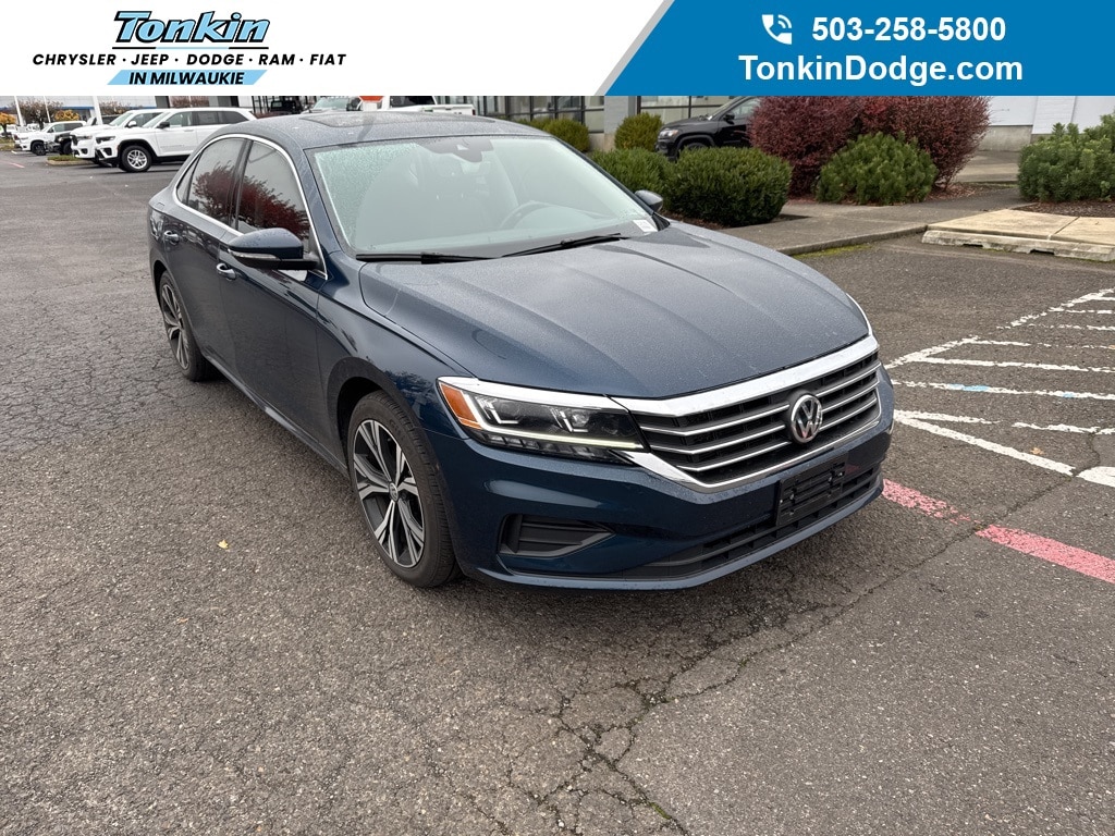 Clean CARFAX. 2022 Volkswagen Passat 2.0T SE 2.0L I4 TSI Turbocharged 6-Speed Automatic with Tiptronic FWD 4D Sedan Blue Metallic 4-Wheel Disc Brakes, 6 Speakers, ABS brakes, Active Blind Spot Monitor, Air Conditioning, AM/FM radio: SiriusXM, Auto-dimming Rear-View mirror, Automatic temperature control, Brake assist, Bumpers: body-color, Custom Fuel Wheels and Off-Road Tires, Delay-off headlights, Driver door bin, Driver vanity mirror, Dual front impact airbags, Dual front side impact airbags, Electronic Stability Control, Emergency communication system, Exterior Parking Camera Rear, First Aid Kit, Four wheel independent suspension, Frameless Auto-Dimming Rearview Mirror, Front anti-roll bar, Front Bucket Seats, Front Center Armrest, Front dual zone A/C, Front reading lights, Fully automatic headlights, Heated door mirrors, Heated Front Comfort Seats, Heated front seats, Illuminated entry, Leather Shift Knob, Leather steering wheel, Low tire pressure warning, Occupant sensing airbag, Outside temperature display, Overhead airbag, Overhead console, Panic alarm, Passenger door bin, Passenger vanity mirror, Perforated V-Tex Leatherette Seating Surfaces, Power door mirrors, Power driver seat, Power moonroof, Power steering, Power windows, Radio data system, Radio: Composition Media w/Touchscreen, Rain sensing wipers, Rear anti-roll bar, Rear reading lights, Rear seat center armrest, Rear window defroster, Remote keyless entry, Roadside Assistance Kit, Speed control, Speed-sensing steering, Split folding rear seat, Steering wheel mounted audio controls, Tachometer, Telescoping steering wheel, Tilt steering wheel, Traction control, Trip computer, Turn signal indicator mirrors, Variably intermittent wipers, VW Care, Wheels: 18" x 8J 5-Spoke 2-Tone Machined Alloy. ***Call (503) 258-5800 to speak to a Sales Professional*** Come in to Ron Tonkin Chrysler Jeep Dodge Ram Fiat in Milwaukie to test drive today! DL0087.