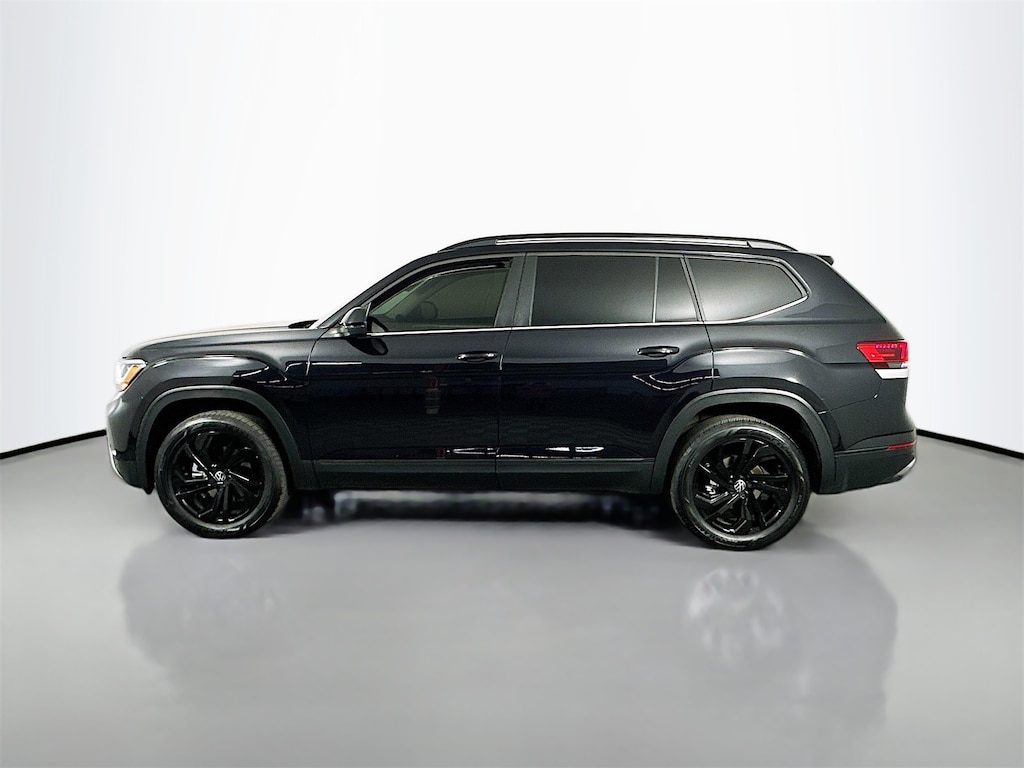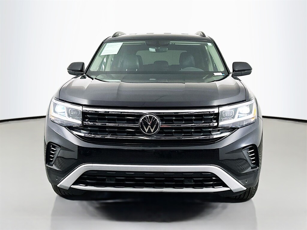Deep Black Pearl 2023 Volkswagen Atlas 3.6L V6 SE w/Technology 4D Sport Utility 3.6L VR6 8-Speed Automatic with Tiptronic AWD 3rd row seats, 4-Wheel Disc Brakes, 6 Speakers, ABS brakes, Air Conditioning, AM/FM radio: SiriusXM with 360L, Auto-dimming Rear-View mirror, Automatic temperature control, Back Up Camera, Backup Camera, Black Wheel Package, Blind Spot, BlueTooth, Brake assist, Bumperdillo Protection Plate for Rear Bumper, Bumpers: body-color, Compass, Delay-off headlights, Driver door bin, Driver vanity mirror, Dual front impact airbags, Dual front side impact airbags, Electronic Stability Control, Emergency communication system: VW Car-Net Safe & Secure 5-year, First Aid Kit, Four wheel independent suspension, Fr Center Armrest Storage Organizing Trays (DISC), Front anti-roll bar, Front Bucket Seats, Front Center Armrest, Front dual zone A/C, Front fog lights, Front reading lights, Fully automatic headlights, Heated Comfort Front Bucket Seats, Heated door mirrors, Heated front seats, Heavy Duty Trunk Liner w/VW CarGo Blocks, Illuminated entry, Keyless Entry, Leather Shift Knob, Low tire pressure warning, Occupant sensing airbag, Outside temperature display, Overhead airbag, Overhead console, Panic alarm, Passenger vanity mirror, Perforated V-Tex Leatherette Seating Surfaces, Power door mirrors, Power driver seat, Power Liftgate, Power steering, Power windows, Radio data system, Radio: MIB3 Composition Media w/8" Touchscreen, Rear air conditioning, Rear anti-roll bar, Rear reading lights, Rear seat center armrest, Rear window defroster, Remote keyless entry, Roadside Assistance Kit, Rubber Mats Kit - Bench Seats, Security system, Speed control, Speed-sensing steering, Split folding rear seat, Spoiler, Standard Suspension, Steering wheel mounted audio controls, Tachometer, Telescoping steering wheel, Tilt steering wheel, Traction control, Trip computer, Turn signal indicator mirrors, VW Care, Wheels: 20" x 8J 5-Spoke Black Painted Alloy.