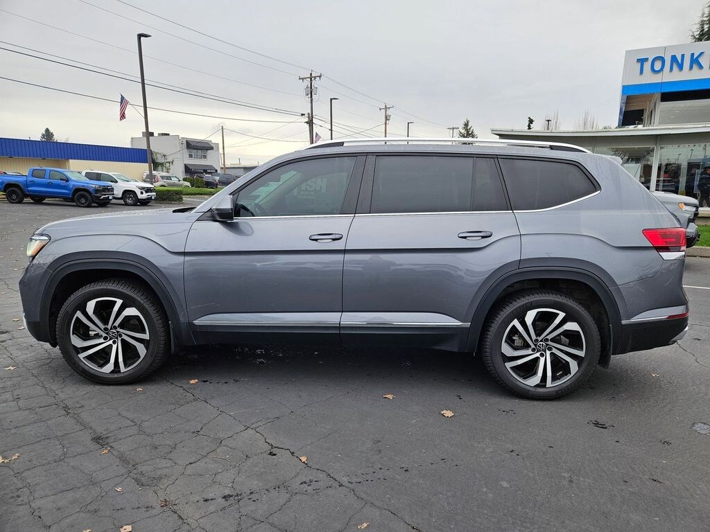 Atlas SEL, 4D Sport Utility, 3.6L V6, 8-Speed Automatic with Tiptronic, AWD, Platinum Gray Metallic, Titan Black Leather, 3.60 Axle Ratio, 3rd row seats: split-bench, 4-Wheel Disc Brakes, 6 Speakers, ABS brakes, Air Conditioning, Alloy wheels, AM/FM radio: SiriusXM with 360L, Auto High-beam Headlights, Auto-dimming Rear-View mirror, Automatic temperature control, Brake assist, Bumpers: body-color, Compass, Delay-off headlights, Driver door bin, Driver vanity mirror, Dual front impact airbags, Dual front side impact airbags, Electronic Stability Control, Emergency communication system: VW Car-Net Safe & Secure 5-year, Exterior Parking Camera Rear, Four wheel independent suspension, Front anti-roll bar, Front Bucket Seats, Front Center Armrest, Front dual zone A/C, Front fog lights, Front reading lights, Fully automatic headlights, Heated Comfort Front Bucket Seats, Heated door mirrors, Heated front seats, Heated steering wheel, Illuminated entry, Leather Shift Knob, Low tire pressure warning, Memory seat, Navigation System, Occupant sensing airbag, Outside temperature display, Overhead airbag, Overhead console, Panic alarm, Passenger door bin, Passenger vanity mirror, Perforated V-Tex Leatherette Seating Surfaces, Power door mirrors, Power driver seat, Power Liftgate, Power moonroof: Panoramic, Power passenger seat, Power steering, Power windows, Radio data system, Radio: MIB3 Discover Media w/8" Touchscreen Nav, Rain sensing wipers, Rear air conditioning, Rear anti-roll bar, Rear reading lights, Rear seat center armrest, Rear window defroster, Rear window wiper, Remote keyless entry, Security system, Speed control, Speed-sensing steering, Split folding rear seat, Spoiler, Standard Suspension, Steering wheel mounted audio controls, Tachometer, Telescoping steering wheel, Tilt steering wheel, Traction control, Trip computer, Turn signal indicator mirrors, Variably intermittent wipers, Wheels: 20" x 8J 5-Spoke 2-Tone Machined Alloy, Atlas SEL, 4D Sport Utility, 3.6L V6, 8-Speed Automatic with Tiptronic, AWD, Platinum Gray Metallic, Titan Black Leather.