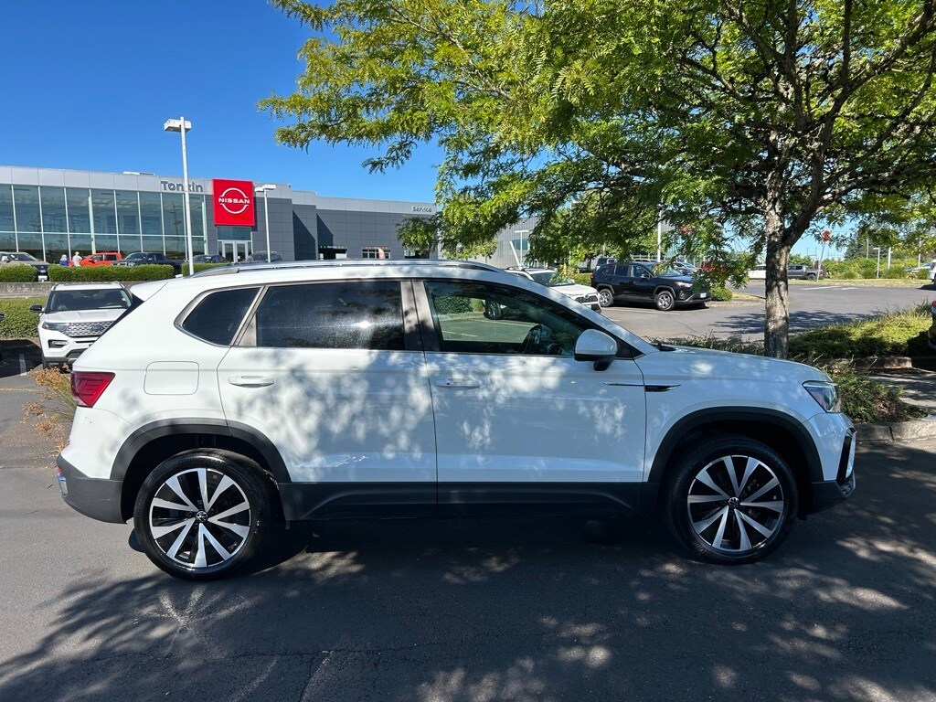 2023 Volkswagen Taos 1.5T SE White 1.5L I4 Turbocharged DOHC 16V LEV3-SULEV30 158hp 28/36 City/Highway MPG 3.23 Axle Ratio, 4-Wheel Disc Brakes, 6 Speakers, ABS brakes, Active Blind Spot Monitor, Air Conditioning, Alloy wheels, AM/FM radio: SiriusXM with 360L, Auto High-beam Headlights, Brake assist, Bumpers: body-color, CloudTex & Cloth Seating Surfaces, Compass, Delay-off headlights, Driver door bin, Driver vanity mirror, Dual front impact airbags, Dual front side impact airbags, Electronic Stability Control, Emergency communication system: VW Car-Net Safe & Secure 5-year, Exterior Parking Camera Rear, Front anti-roll bar, Front Bucket Seats, Front Center Armrest, Front reading lights, Front Strut Rear Torsion Beam Suspension, Front wheel independent suspension, Fully automatic headlights, Heated door mirrors, Heated Front Comfort Seats, Heated front seats, Heated steering wheel, Illuminated entry, Leather Shift Knob, Low tire pressure warning, Occupant sensing airbag, Outside temperature display, Overhead airbag, Overhead console, Panic alarm, Passenger door bin, Passenger vanity mirror, Power door mirrors, Power driver seat, Power steering, Power windows, Radio data system, Radio: MIB3 Composition Media AM/FM/HD, Rain sensing wipers, Rear anti-roll bar, Rear seat center armrest, Rear window defroster, Rear window wiper, Remote keyless entry, Roof rack: rails only, Security system, Speed control, Speed-sensing steering, Split folding rear seat, Spoiler, Steering wheel mounted audio controls, Tachometer, Telescoping steering wheel, Tilt steering wheel, Traction control, Trip computer, Variably intermittent wipers, Wheels: 18" 2-Tone Machined Alloy. CARFAX One-Owner. Clean CARFAX. Our Best Price Up Front, No Games or Gimmicks. Our advertised price is for a retail type purchase and may not be available for Fleet or Commercial use type purchase; please call us to confirm.