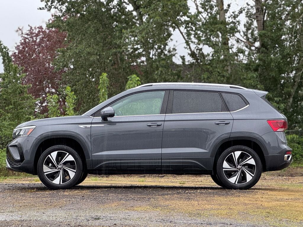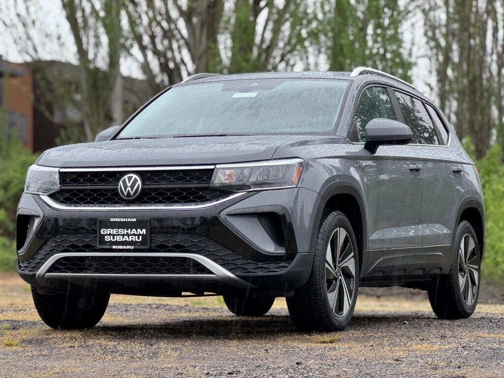 Recent Arrival! CARFAX One-Owner. ***ALL WHEEL DRIVE (AWD)***, ***CARFAX 1-OWNER***, ***LOCAL TRADE***, ***Sunroof/Moonroof***, 4-Wheel Disc Brakes, 5.20 Axle Ratio, 6 Speakers, ABS brakes, Active Blind Spot Monitor, Air Conditioning, Alloy wheels, AM/FM radio: SiriusXM with 360L, Auto High-beam Headlights, Auto-Dimming Rear-View Mirror, Brake assist, Bumpers: body-color, Cargo Area Retractable Privacy Cover, CloudTex & Cloth Seating Surfaces, Compass, Delay-off headlights, Driver door bin, Driver vanity mirror, Dual front impact airbags, Dual front side impact airbags, Electronic Stability Control, Emergency communication system: VW Car-Net Safe & Secure 5-year, Exterior Parking Camera Rear, Four wheel independent suspension, Front anti-roll bar, Front Bucket Seats, Front Center Armrest, Front reading lights, Front Strut Rear Multi-Link Suspension, Fully automatic headlights, Heated door mirrors, Heated Front Comfort Seats, Heated front seats, Heated steering wheel, Illuminated entry, Leather Shift Knob, Low tire pressure warning, Occupant sensing airbag, Outside temperature display, Overhead airbag, Overhead console, Panic alarm, Panoramic Sunroof Package, Passenger door bin, Passenger vanity mirror, Power door mirrors, Power driver seat, Power steering, Power windows, Radio data system, Radio: MIB3 Composition Media AM/FM/HD, Rain sensing wipers, Rear anti-roll bar, Rear seat center armrest, Rear Sensors Credit, Rear window defroster, Rear window wiper, Remote keyless entry, Rubber Mats Kit (SNM), Security system, Speed control, Speed-sensing steering, Split folding rear seat, Spoiler, Steering wheel mounted audio controls, Tachometer, Telescoping steering wheel, Tilt steering wheel, Traction control, Trip computer, Variably intermittent wipers, VW Car-Net Safe & Secure 5-Year Plan, Wheels: 18" 2-Tone Machined Alloy. 2023 Volkswagen Taos 1.5T SE 4D Sport Utility 1.5L I4 Turbocharged DOHC 16V LEV3-SULEV30 158hp 7-Speed DSG Automatic with Tiptronic AWD Gray