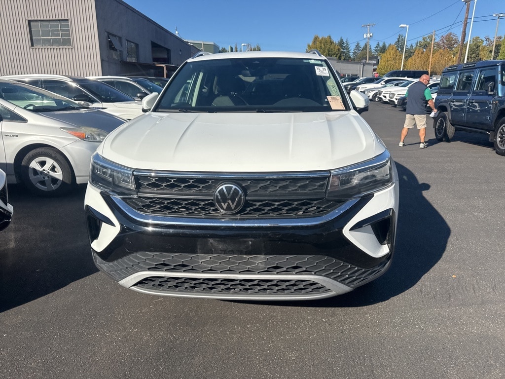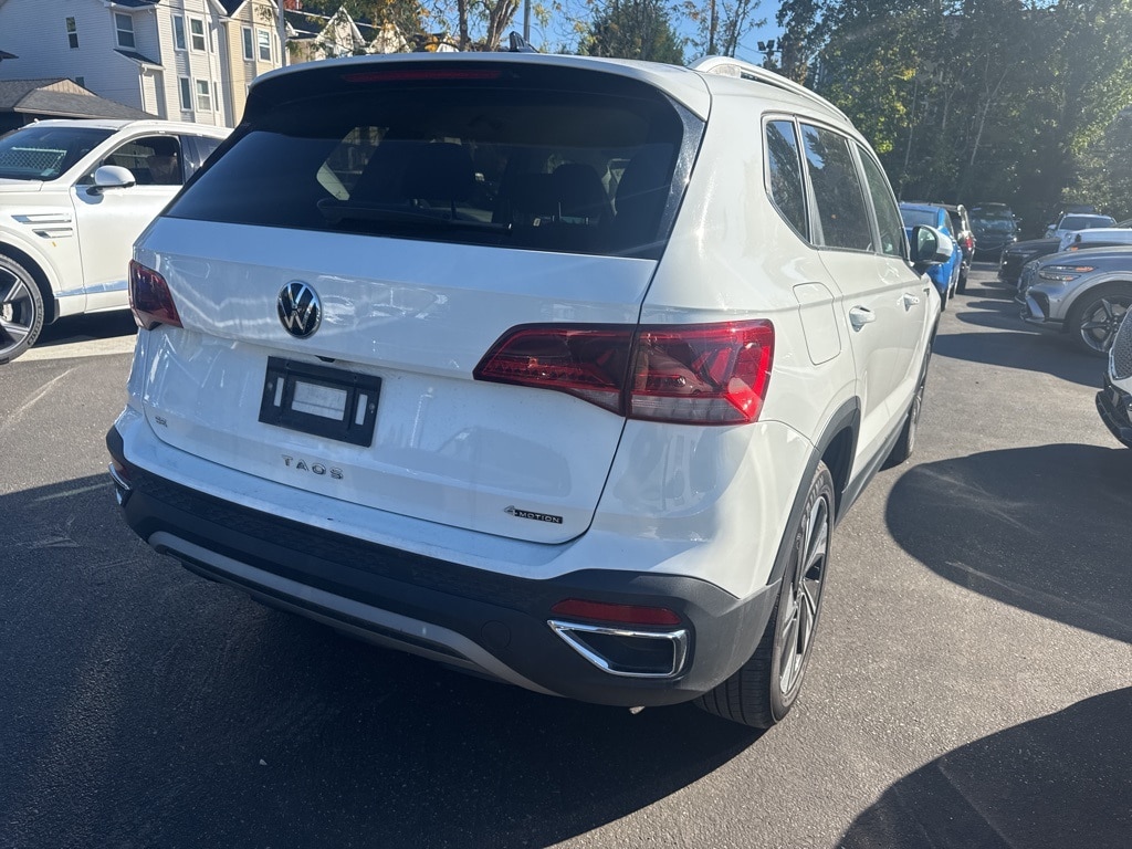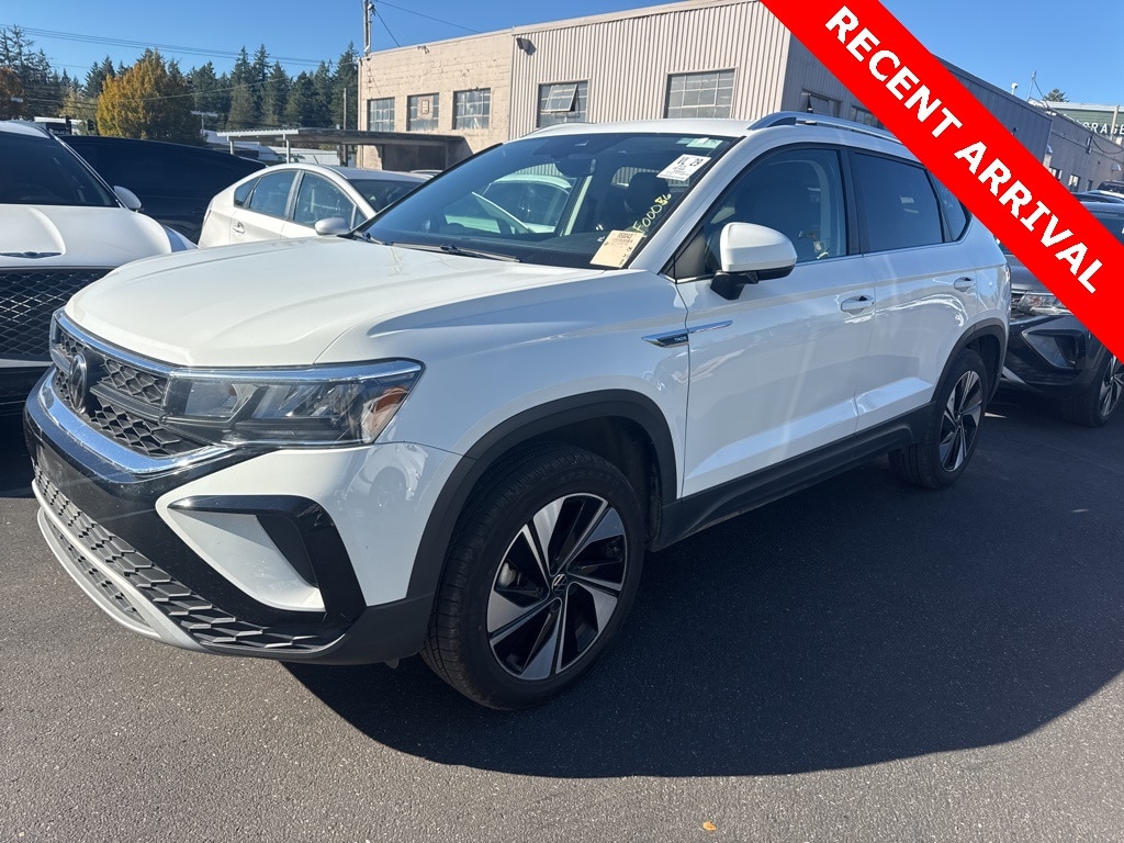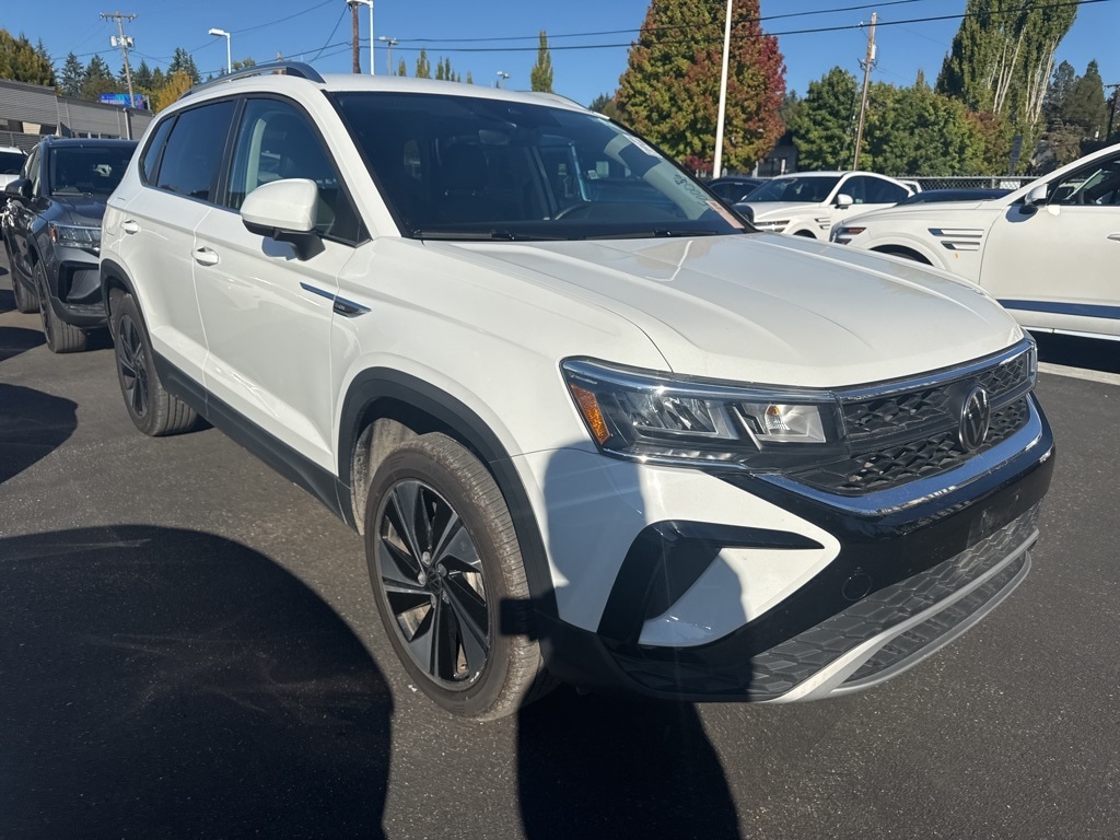 CARFAX ONE OWNER *** ALL-WHEEL-DRIVE *** 2024 Volkswagen Taos 1.5T SE 4D Sport Utility 1.5L I4 Turbocharged DOHC 16V LEV3-SULEV30 158hp 7-Speed DSG Automatic with Tiptronic AWD Pure White CARFAX One-Owner. 4-Wheel Disc Brakes, 5.20 Axle Ratio, 6 Speakers, ABS brakes, Active Blind Spot Monitor, Air Conditioning, Alloy wheels, AM/FM radio: SiriusXM with 360L, Auto High-beam Headlights, Automatic temperature control, Brake assist, Bumpers: body-color, CloudTex & Cloth Seating Surfaces, Compass, Delay-off headlights, Driver door bin, Driver vanity mirror, Dual front impact airbags, Dual front side impact airbags, Electronic Stability Control, Emergency communication system: VW Car-Net Safe & Secure 5-year, Exterior Parking Camera Rear, Four wheel independent suspension, Front anti-roll bar, Front Bucket Seats, Front Center Armrest, Front dual zone A/C, Front reading lights, Front Strut Rear Multi-Link Suspension, Fully automatic headlights, Heated door mirrors, Heated Front Bucket Seats, Heated front seats, Heated steering wheel, Illuminated entry, Leather Shift Knob, Low tire pressure warning, Occupant sensing airbag, Outside temperature display, Overhead airbag, Overhead console, Panic alarm, Passenger door bin, Passenger vanity mirror, Power door mirrors, Power driver seat, Power steering, Power windows, Radio data system, Radio: MIB3 Composition Media AM/FM/HD, Rain sensing wipers, Rear anti-roll bar, Rear seat center armrest, Rear window defroster, Rear window wiper, Remote keyless entry, Security system, Speed control, Speed-sensing steering, Split folding rear seat, Spoiler, Steering wheel mounted audio controls, Tachometer, Telescoping steering wheel, Tilt steering wheel, Traction control, Trip computer, Variably intermittent wipers, Wheels: 18" 2-Tone Machined Alloy.