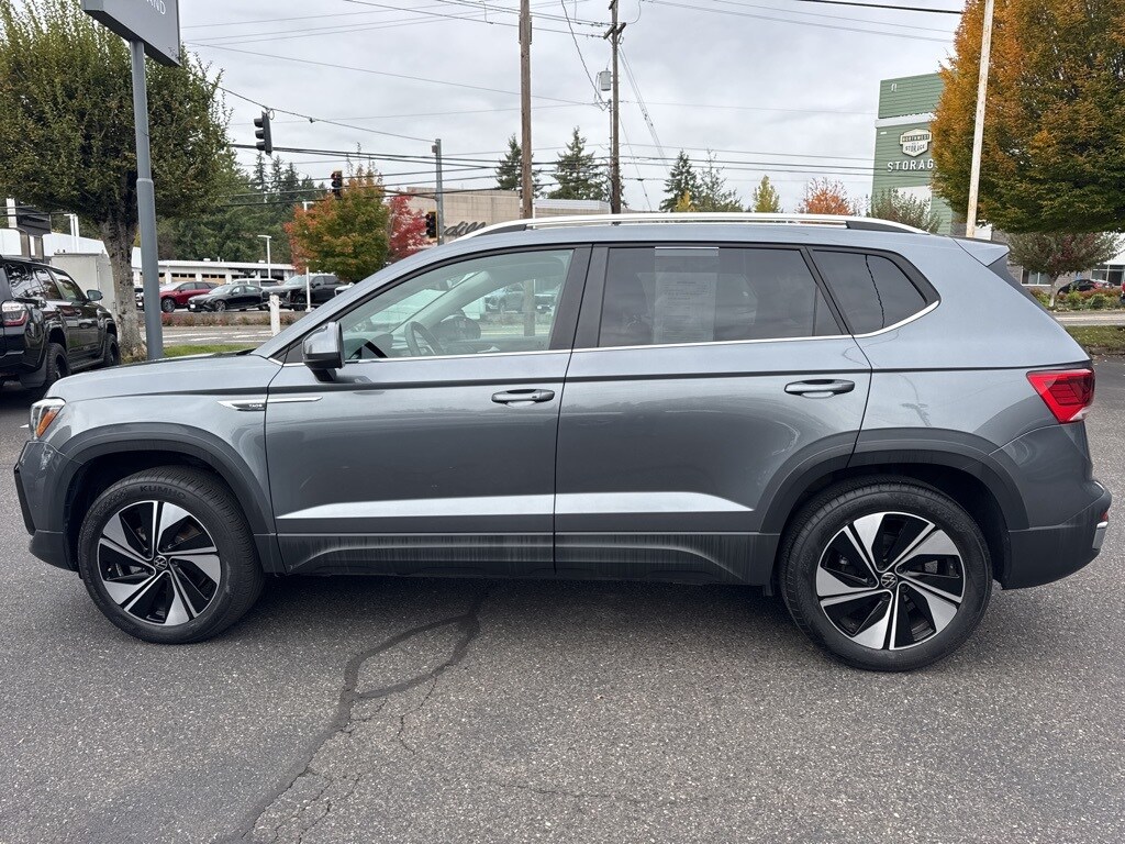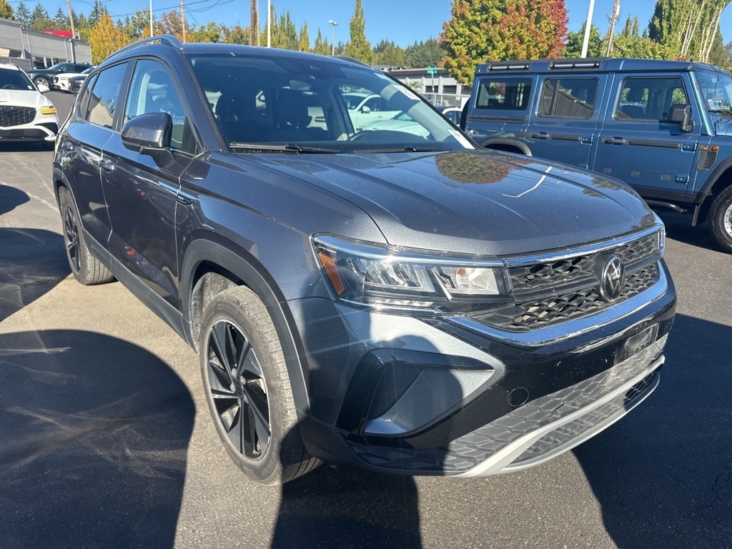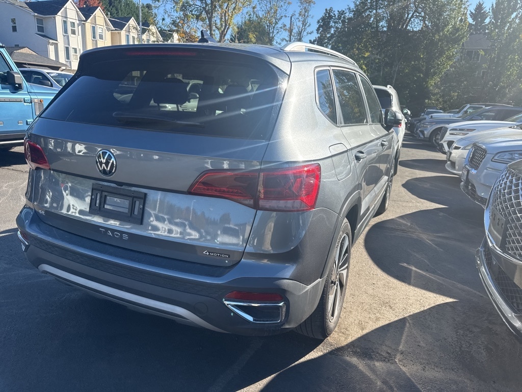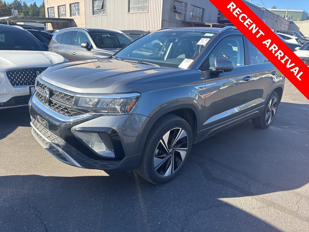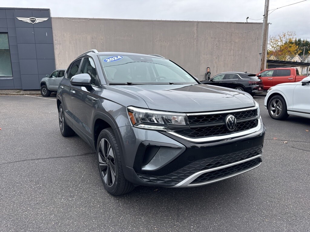 CARFAX ONE OWNER *** ALL-WHEEL-DRIVE *** 2024 Volkswagen Taos 1.5T SE 4D Sport Utility 1.5L I4 Turbocharged DOHC 16V LEV3-SULEV30 158hp 7-Speed DSG Automatic with Tiptronic AWD Platinum Gray Metallic CARFAX One-Owner. 4-Wheel Disc Brakes, 5.20 Axle Ratio, 6 Speakers, ABS brakes, Active Blind Spot Monitor, Air Conditioning, Alloy wheels, AM/FM radio: SiriusXM with 360L, Auto High-beam Headlights, Automatic temperature control, Brake assist, Bumpers: body-color, CloudTex & Cloth Seating Surfaces, Compass, Delay-off headlights, Driver door bin, Driver vanity mirror, Dual front impact airbags, Dual front side impact airbags, Electronic Stability Control, Emergency communication system: VW Car-Net Safe & Secure 5-year, Exterior Parking Camera Rear, Four wheel independent suspension, Front anti-roll bar, Front Bucket Seats, Front Center Armrest, Front dual zone A/C, Front reading lights, Front Strut Rear Multi-Link Suspension, Fully automatic headlights, Heated door mirrors, Heated Front Bucket Seats, Heated front seats, Heated steering wheel, Illuminated entry, Leather Shift Knob, Low tire pressure warning, Occupant sensing airbag, Outside temperature display, Overhead airbag, Overhead console, Panic alarm, Passenger door bin, Passenger vanity mirror, Power door mirrors, Power driver seat, Power steering, Power windows, Radio data system, Radio: MIB3 Composition Media AM/FM/HD, Rain sensing wipers, Rear anti-roll bar, Rear seat center armrest, Rear window defroster, Rear window wiper, Remote keyless entry, Security system, Speed control, Speed-sensing steering, Split folding rear seat, Spoiler, Steering wheel mounted audio controls, Tachometer, Telescoping steering wheel, Tilt steering wheel, Traction control, Trip computer, Variably intermittent wipers, Wheels: 18" 2-Tone Machined Alloy.