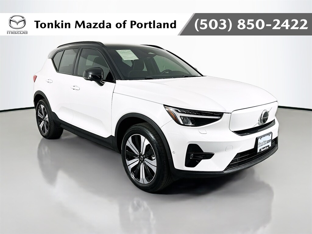 CARFAX One-Owner. White 2023 Volvo XC40 Recharge Pure Electric Twin Plus 4D Sport Utility Electric Motor 1-Speed Automatic AWD 4-Wheel Disc Brakes, 8 Speakers, ABS brakes, Air Conditioning, Apple CarPlay, Audio memory, Auto High-beam Headlights, Auto-dimming door mirrors, Auto-dimming Rear-View mirror, Automatic temperature control, Back Up Camera, Backup Camera, Blind Spot, BlueTooth, Brake assist, Bumpers: body-color, Connect Suede Textile/Microtech Upholstery, Delay-off headlights, Driver door bin, Driver vanity mirror, Dual front impact airbags, Dual front side impact airbags, Electronic Stability Control, Emergency communication system, Four wheel independent suspension, Front anti-roll bar, Front Bucket Seats, Front Center Armrest, Front dual zone A/C, Front fog lights, Front reading lights, Fully automatic headlights, Garage door transmitter: HomeLink, Heated door mirrors, Heated Front Seats, Heated front seats, Heated Seats, HVAC memory, Illuminated entry, Internet access capable: Digital Services Package w/ 4 Year Subscription, Keyless Entry, Knee airbag, Leather Shift Knob, Low tire pressure warning, Memory seat, Navigation system: Sensus Navigation Pro, Occupant sensing airbag, Outside temperature display, Overhead airbag, Overhead console, Panic alarm, Panorama Roof, Passenger door bin, Passenger vanity mirror, Power door mirrors, Power driver seat, Power Liftgate, Power moonroof, Power passenger seat, Power steering, Power windows, Radio data system, Radio: 250W High Performance Audio System, Rear anti-roll bar, Rear fog lights, Rear reading lights, Rear seat center armrest, Rear window defroster, Remote keyless entry, Security system, Speed control, Speed-sensing steering, Split folding rear seat, Spoiler, Steering wheel mounted audio controls, Telescoping steering wheel, Tilt steering wheel, Traction control, Trip computer, Turn signal indicator mirrors.